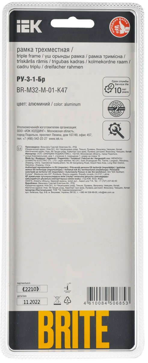 Рамка IEK BRITE DECOR Алюминий металл. скругл.угол 3-м РУ-3-1-Бр RE BR-M32-M-01-K47 по цене 2 482 руб. с фотографией и техническими характеристиками. Для покупки товара нажмите кнопку "Купить" и перейдите в корзину или позвоните по телефону 8 (495) 585 32 60 или 8 (800) 222 23 53.