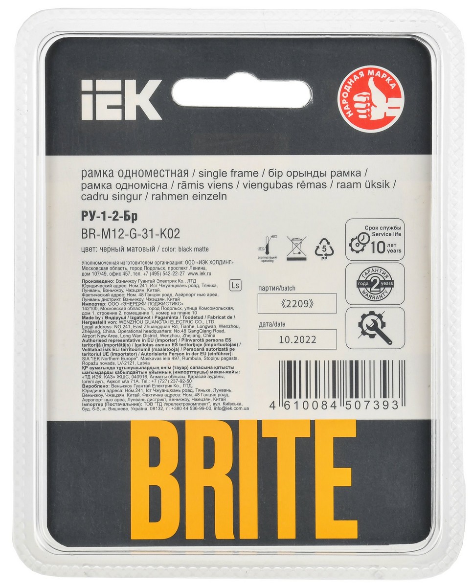 Рамка IEK BRITE DECOR Черный матовый стекло 1-м РУ-1-2-Бр BR-M12-G-31-K02 по цене 714 руб. с фотографией и техническими характеристиками. Для покупки товара нажмите кнопку "Купить" и перейдите в корзину или позвоните по телефону 8 (495) 585 32 60 или 8 (800) 222 23 53.