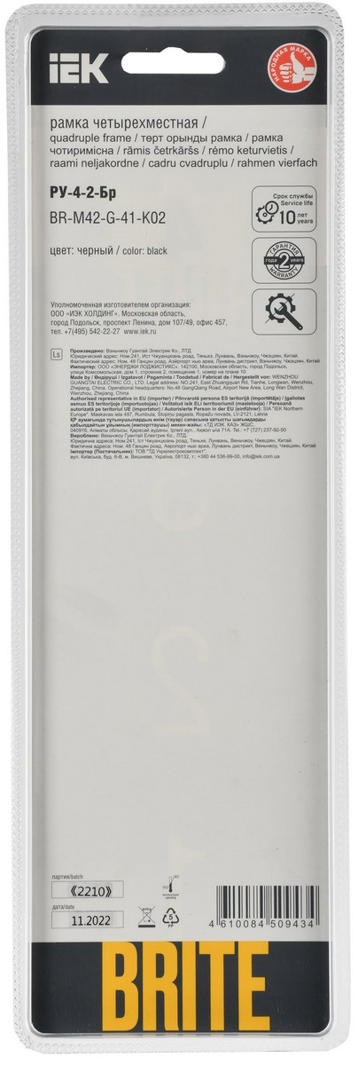 Рамка IEK BRITE DECOR Черный матовый стекло скругл.угол 4-м РУ-4-2-Бр RE BR-M42-G-41-K02 по цене 3 740 руб. с фотографией и техническими характеристиками. Для покупки товара нажмите кнопку "Купить" и перейдите в корзину или позвоните по телефону 8 (495) 585 32 60 или 8 (800) 222 23 53.
