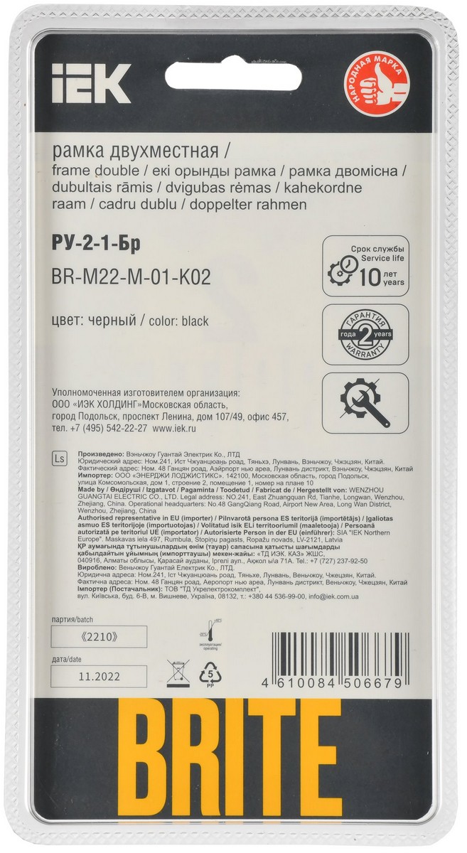 Рамка IEK BRITE DECOR Черный металл. скругл.угол 2-м РУ-2-1-Бр RE BR-M22-M-01-K02 по цене 439 руб. с фотографией и техническими характеристиками. Для покупки товара нажмите кнопку "Купить" и перейдите в корзину или позвоните по телефону 8 (495) 585 32 60 или 8 (800) 222 23 53.