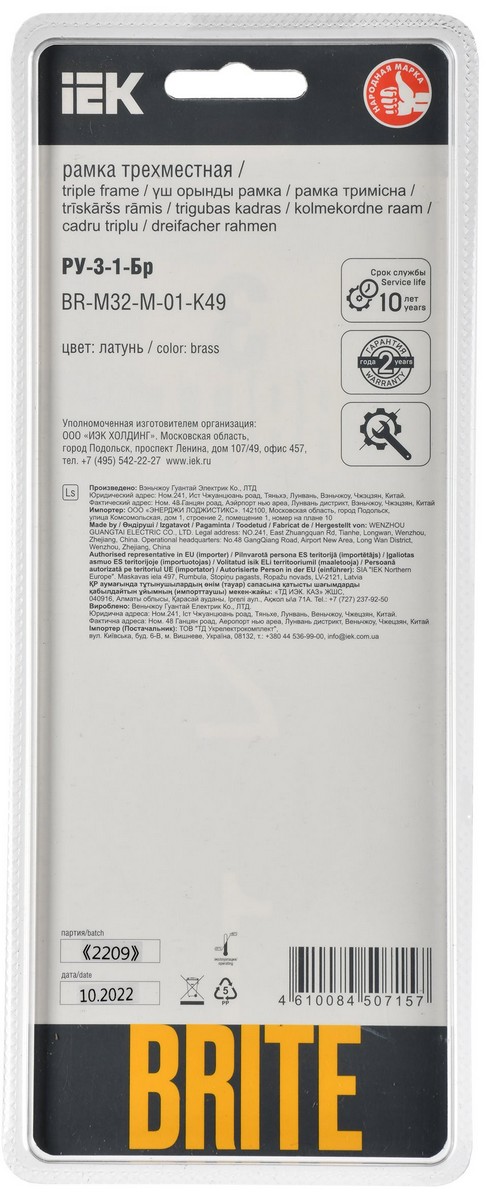 Рамка IEK BRITE DECOR Латунь металл. скругл.угол 3-м РУ-3-1-Бр RE BR-M32-M-01-K49 по цене 2 482 руб. с фотографией и техническими характеристиками. Для покупки товара нажмите кнопку "Купить" и перейдите в корзину или позвоните по телефону 8 (495) 585 32 60 или 8 (800) 222 23 53.