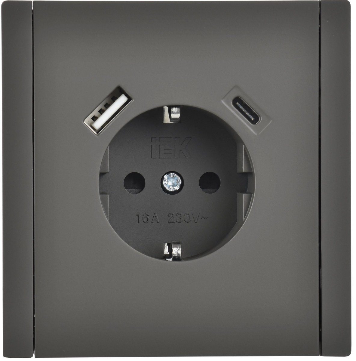 Розетка IEK FORTE&PIANO Серый с/з со шт винтовое крепление 16А USB A+C 18Вт FP347