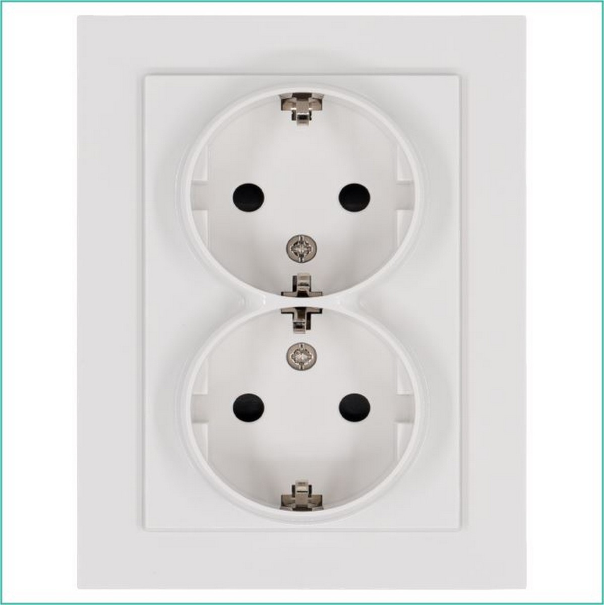 Двойная розетка SCHUKO© с винтовым зажимом для кабеля до 2,5мм², с защитными шторками. Для установки в одну монтажную коробку.