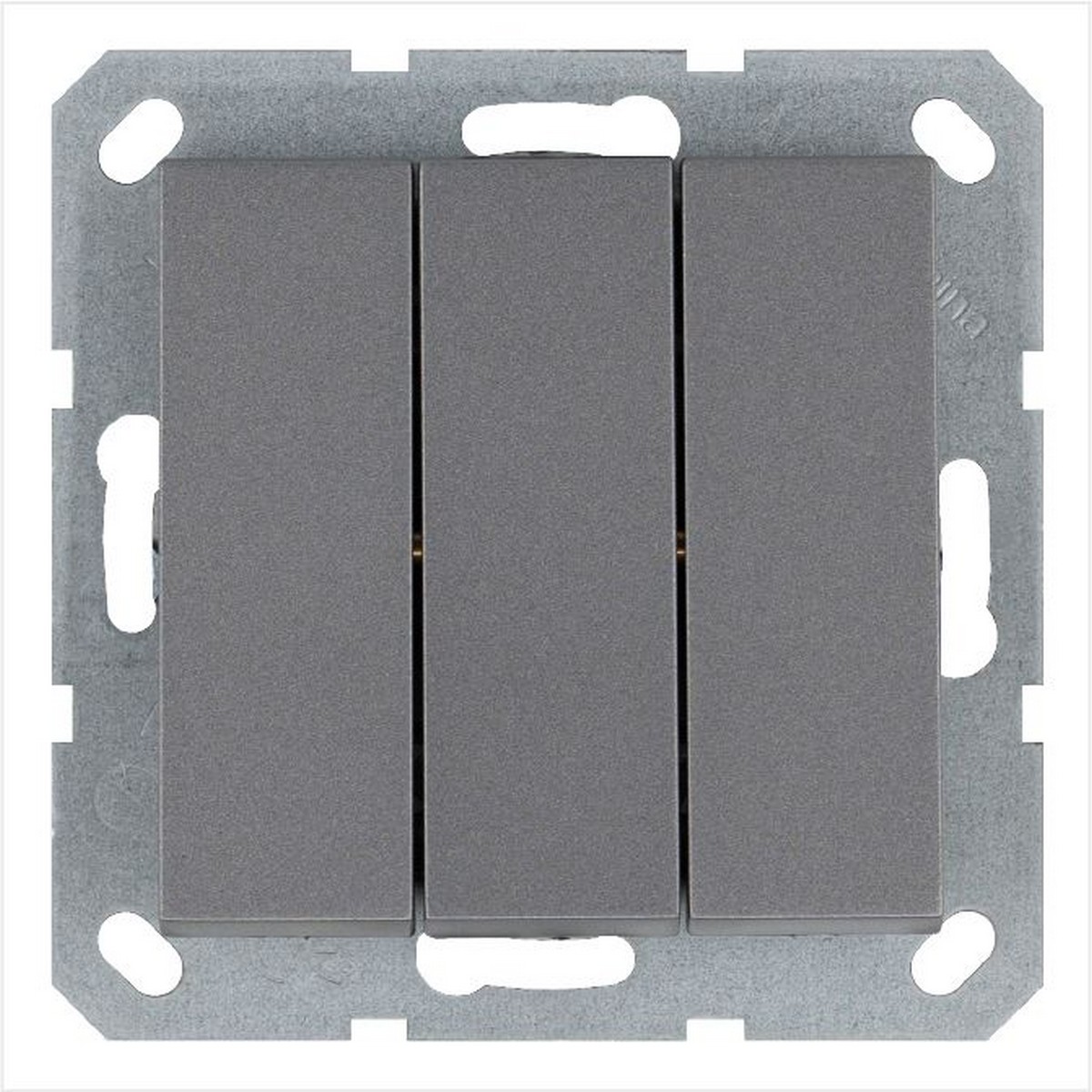 Выключатель трехклавишный JASMART Алюминий G3031S по цене 779 руб. с фотографией и техническими характеристиками. Для покупки товара нажмите кнопку "Купить" и перейдите в корзину или позвоните по телефону 8 (495) 585 32 60 или 8 (800) 222 23 53.