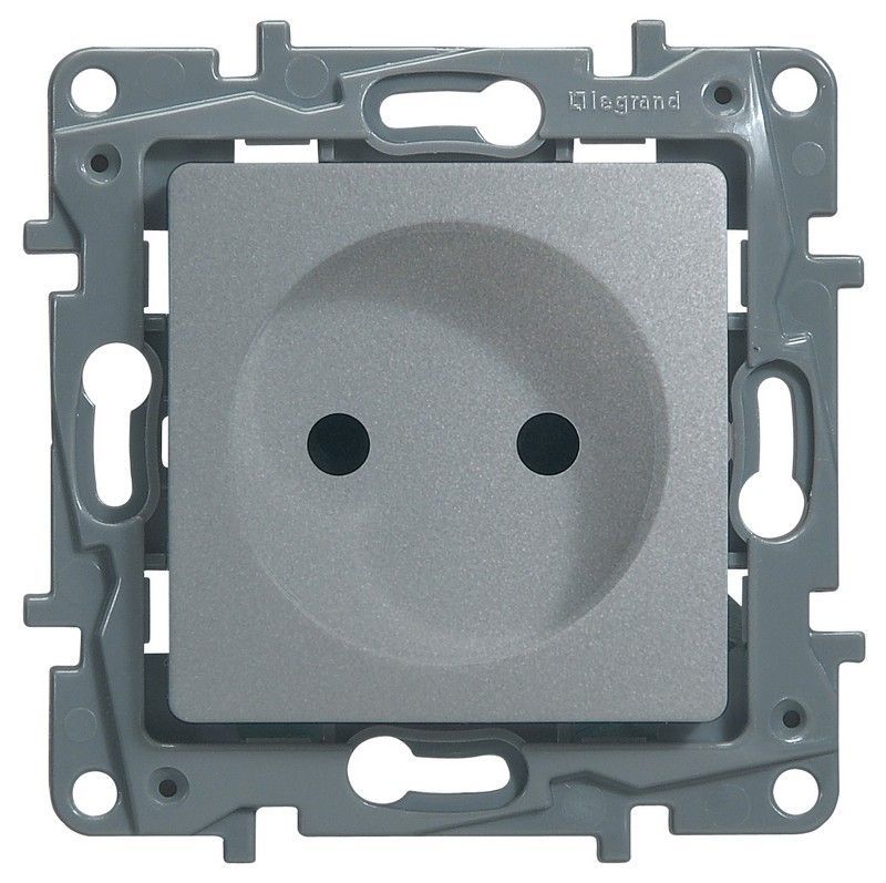 Электрическая розетка Legrand Etika алюминиевого цвета без заземления со шторками. Оснащена винтовыми клеммами для надежного подключения. Стильный дизайн и безопасность в использовании. Подходит для современных интерьеров.
