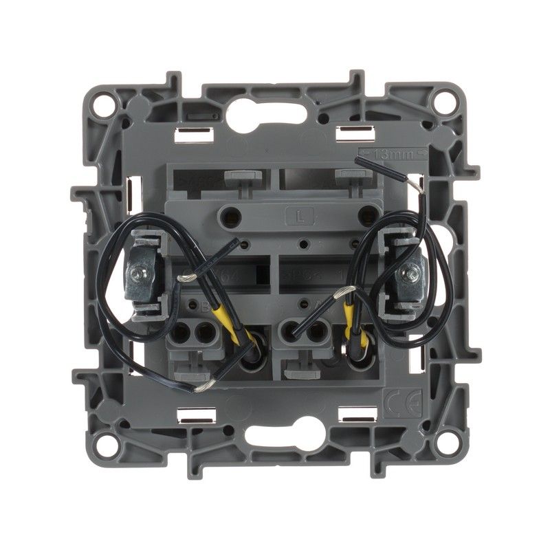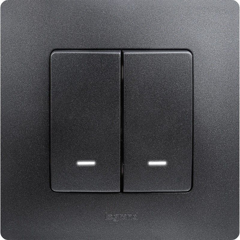 Выключатель с подсветкой двухклавишный Legrand Etika для скрытого монтажа, номинальный ток 10 А, цвет антрацит. Предназначен для управления двумя электрическими цепями.Особенности:- Лампы подсветки светодиодные (2 шт.) заменяемые, цвет подсветки- белый.- Благодаря изменяемой схеме подключения, лампа подсветки либо облегчает ориентирование в темноте, либо информирует о включении нагрузки. - Материал клавиши глянцевый AБС пластик- стоек к выгоранию и загрязнениям. - Ход клавиш короткий, не громкий- Все токоведущие части выключателя имеют защиту от случайного прикосновения. - Безвинтовые зажимы для присоединения проводов не требуют обслуживания.Особенности серии Etika:- Корпус механизма- высококачественный поликарбонат, не проводит электрический ток, не поддерживает горение. - Специальный профиль внешнего контура механизма обеспечивает простоту и безошибочность многопостового монтажа. - Острые крепёжные лапки с широким углом раскрытия обеспечивают надёжную фиксацию в монтажной коробке.