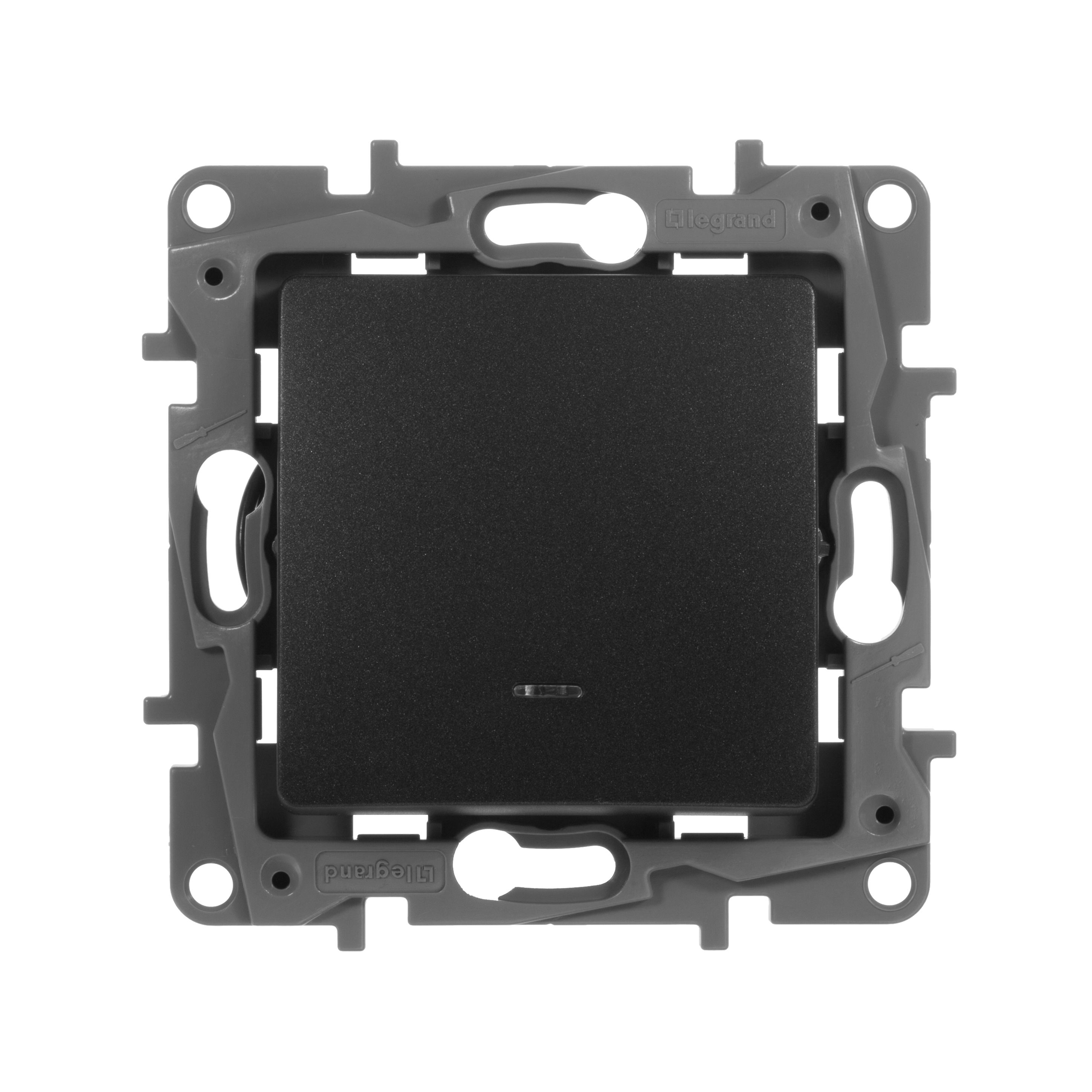 Выключатель с подсветкой одноклавишный Legrand Etika для скрытого монтажа, номинальный ток 10 А, цвет антрацит. Используется для управления приборами освещения, вентиляции и т.д.Особенности:- Лампа подсветки светодиодная, заменяемая, цвет подсветки- белый.- Благодаря изменяемой схеме подключения, лампа подсветки либо облегчает ориентирование в темноте, либо информирует о включении нагрузки.- Материал клавиши глянцевый AБС пластик- стоек к выгоранию и загрязнениям. - Ход клавиши короткий, не громкий. - Все токоведущие части выключателя имеют защиту от случайного прикосновения.- Безвинтовые зажимы для присоединения проводов не требуют обслуживания.Особенности серии Etika:- Корпус механизма- высококачественный поликарбонат, не проводит электрический ток, не поддерживает горение. - Специальный профиль внешнего контура механизма обеспечивает простоту и безошибочность многопостового монтажа.- Острые крепёжные лапки с широким углом раскрытия обеспечивают надёжную фиксацию в монтажной коробке.