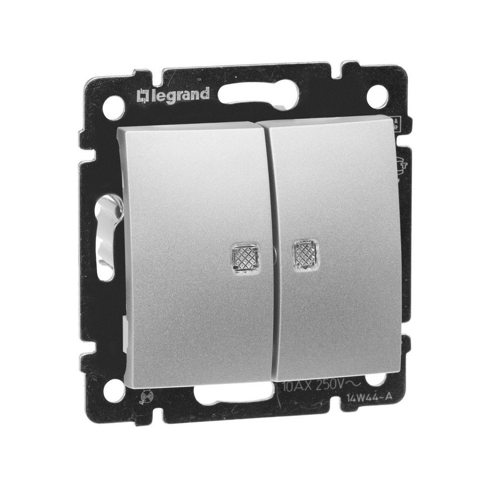 Выключатель Legrand Valena Алюминий 2-х клавишный с подсветкой 770128 по цене 1 538 руб. с фотографией и техническими характеристиками. Для покупки товара нажмите кнопку "Купить" и перейдите в корзину или позвоните по телефону 8 (495) 585 32 60 или 8 (800) 222 23 53.