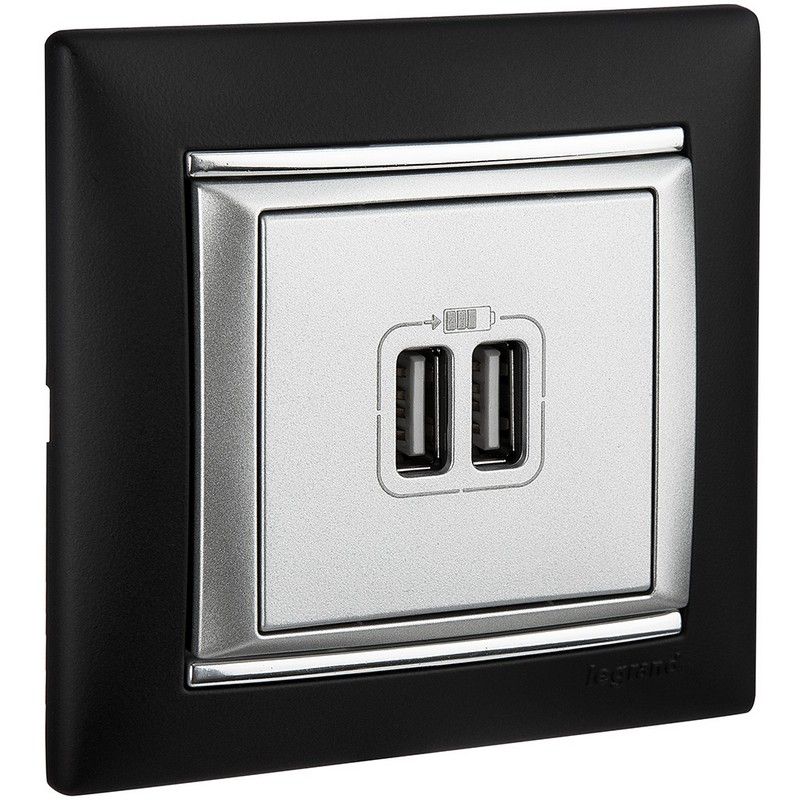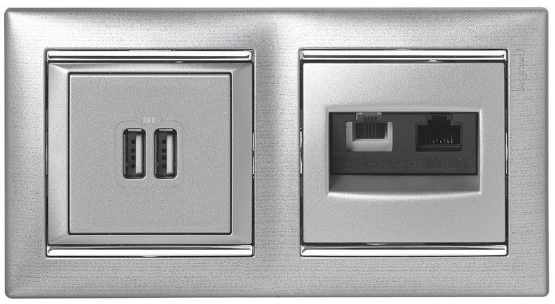 Розетка USB Legrand Valena Classic, артикул 770270, обеспечивает удобную зарядку устройств с двумя USB-портами. Стильный алюминиевый дизайн гармонично вписывается в современные интерьеры. Надежное решение от проверенного производителя для офисов и жилых помещений.