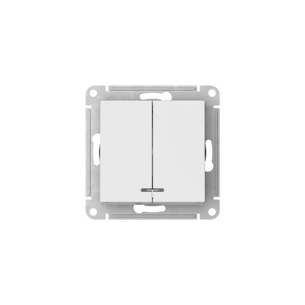 Механизм с быстрозажимными клеммами Systeme Electric (ранее Schneider Electric) серии AtlasDesign в цвете белый выключателя 2-клавишного с подсветкой подходит для сетей 250 В, на ток 10 А. С помощью новых быстрозажимных клемм монтаж розеток и выключателей стал намного быстрее. Теперь подключение не требует использования отвертки.