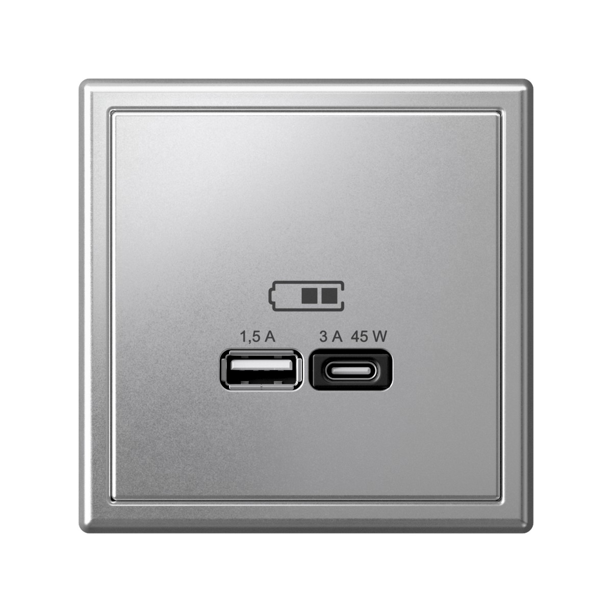 USB Розетка Systeme Electric ArtGallery (артикул GAL000329) — практичное и стильное решение для вашего интерьера. В элегантном алюминиевом цвете, данная двойная USB-розетка сочетает в себе два разъема: тип A для стандартных мобильных устройств и тип C для новейших гаджетов. Высокоскоростная зарядка гарантирует мощность до 45Вт на тип-C, а тип-A — 7.5 Вт, что позволяет быстро подзаряжать устройства. Розетка поддерживает современные протоколы быстрой зарядки QC и PD, обеспечивая эффективное использование. Награждённая за лучший промышленный дизайн на премии МИНПРОМТОРГ 2023, она не только добавит функциональности, но и станет стильным акцентом в вашем доме или офисе. Идеальное сочетание современности и элегантности — выбирайте Systeme Electric для удобства и стиля!