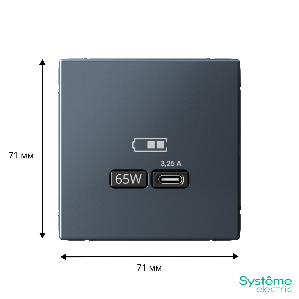 USB Розетка Systeme Electric ArtGallery в цвете грифель (артикул GAL000727) — это идеальное сочетание стиля и функциональности. Уникальный оттенок грифель соответствует современным трендам интерьера, добавляя изысканность в любой простор. Устройство оснащено высокоскоростным USB-разъемом типа C с мощностью 65Вт, что позволяет эффективно заряжать как ноутбуки, так и последние модели смартфонов, поддерживающих функцию быстрой зарядки. Розетка поддерживает самые актуальные протоколы QC и PD, обеспечивая максимальную скорость и безопасность при зарядке. Лицевые детали выполнены из прочного ABS-пластика, который устойчив к царапинам и УФ-излучению, что продлевает срок службы устройства. Розетка признана лучшим промышленным дизайном на премии МИНПРОМТОРГ 2023, что подтверждает ее высокое качество и эстетическую привлекательность.