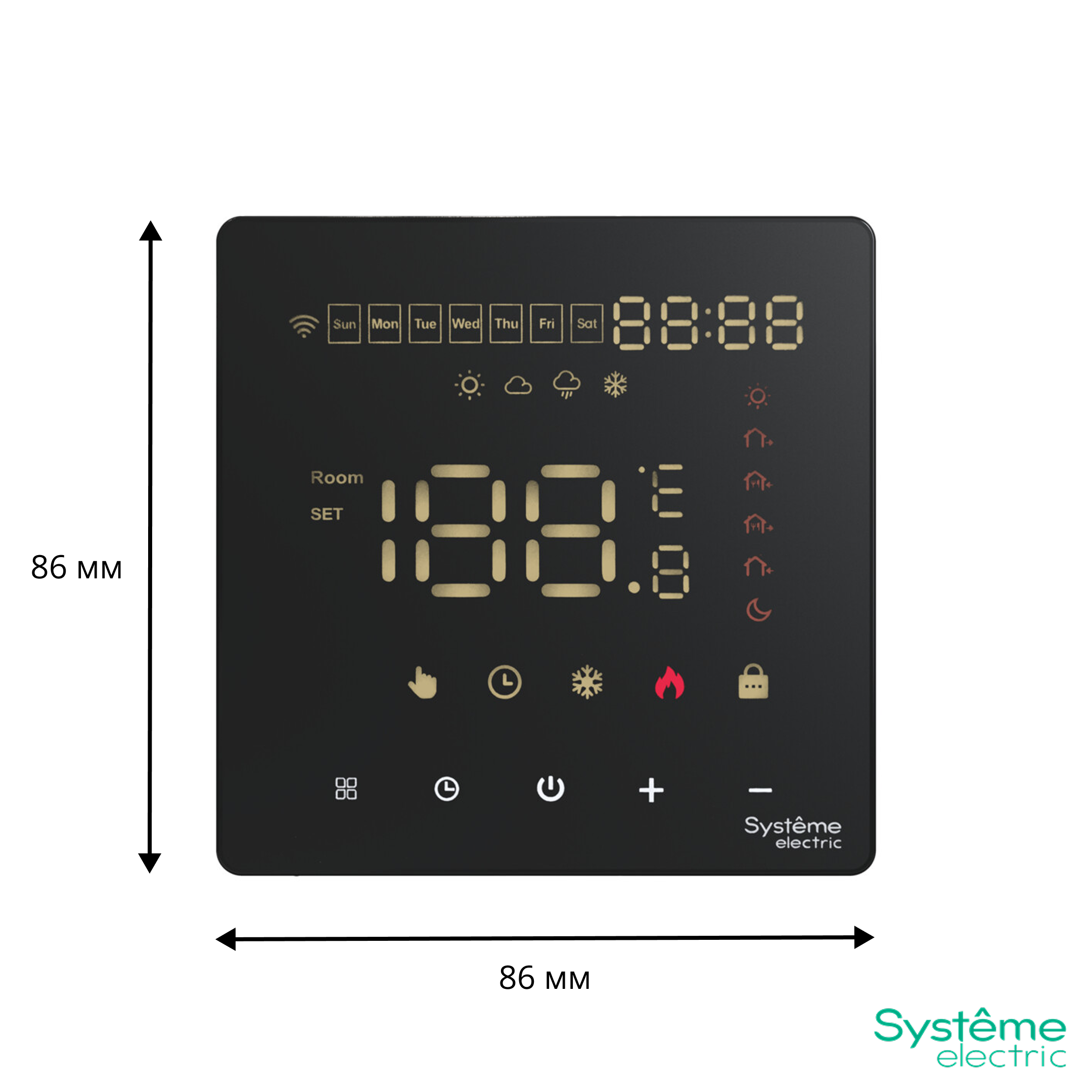 Термостат программируемый Systeme Electric ArtGallery Черный с Wi-Fi для теплого пола GAL001038 по цене 8 134 руб. с фотографией и техническими характеристиками. Для покупки товара нажмите кнопку "Купить" и перейдите в корзину или позвоните по телефону 8 (495) 585 32 60 или 8 (800) 222 23 53.