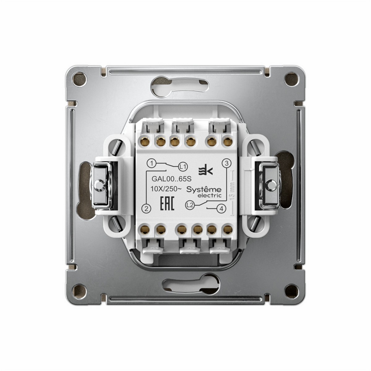 Механизм с быстрозажимными клеммами Systeme Electric серии ArtGallery в цвете шампань переключателя 2-клавишного подходит для сетей 250 В, на ток 10 А. С помощью новых быстрозажимных клемм монтаж стал быстрее. Для подключения не требуется отвертка. Классическое цветовое решение станет изюминкой любого интерьера. Лицевые детали из качественного ABS-пластика, устойчивого к царапинам и УФ-излучению. Лучший промышленный дизайн (по итогам премии МИНПРОМТОРГ 2023).