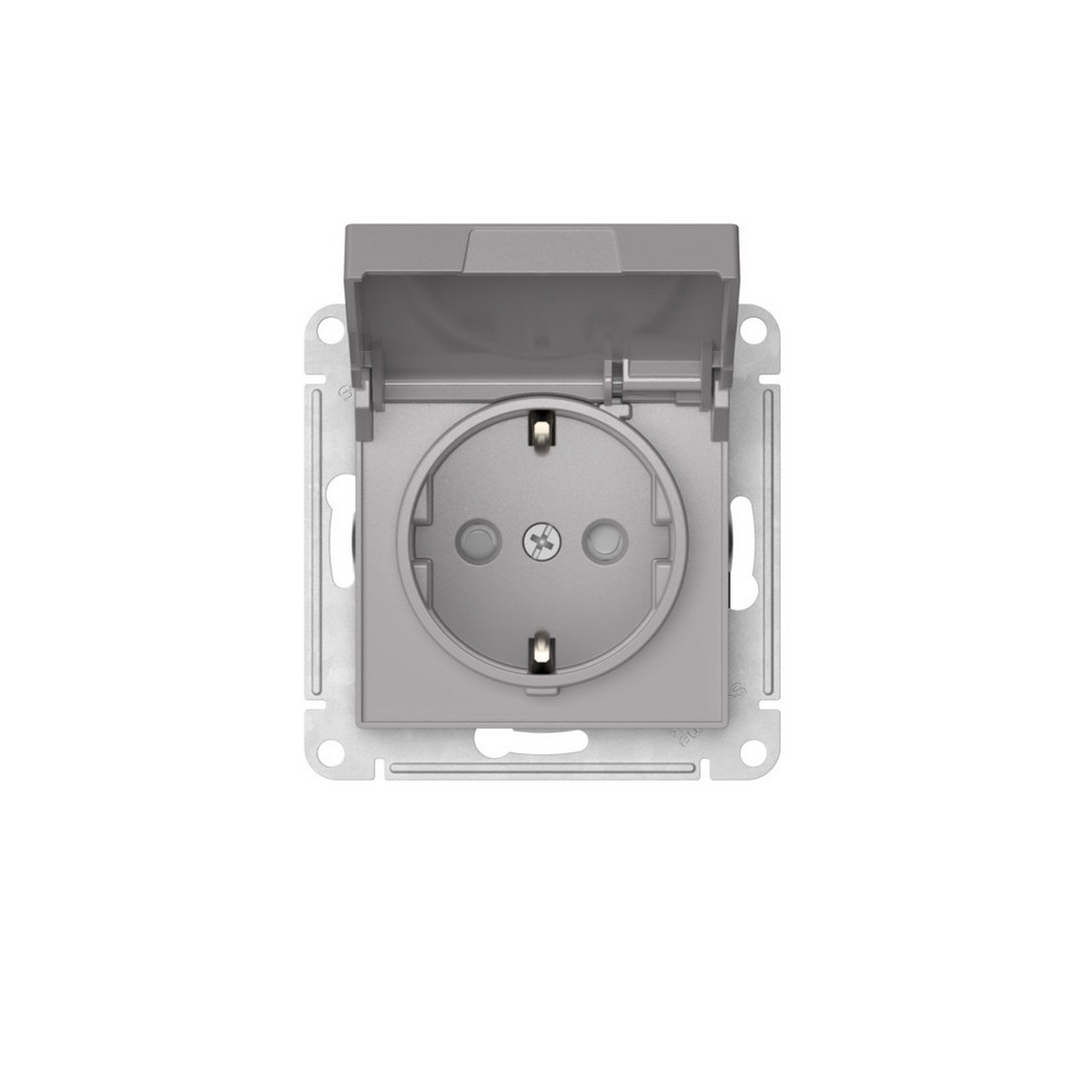 Механизм с быстрозажимными клеммами Systeme Electric (ранее Schneider Electric) серии AtlasDesign в цвете алюминий розетки одинарной с заземлением, со штороками и крышкой подходит для сетей 250 В, на ток 16 А. С помощью новых быстрозажимных клемм монтаж розеток и выключателей стал намного быстрее. Теперь подключение не требует использования отвертки.