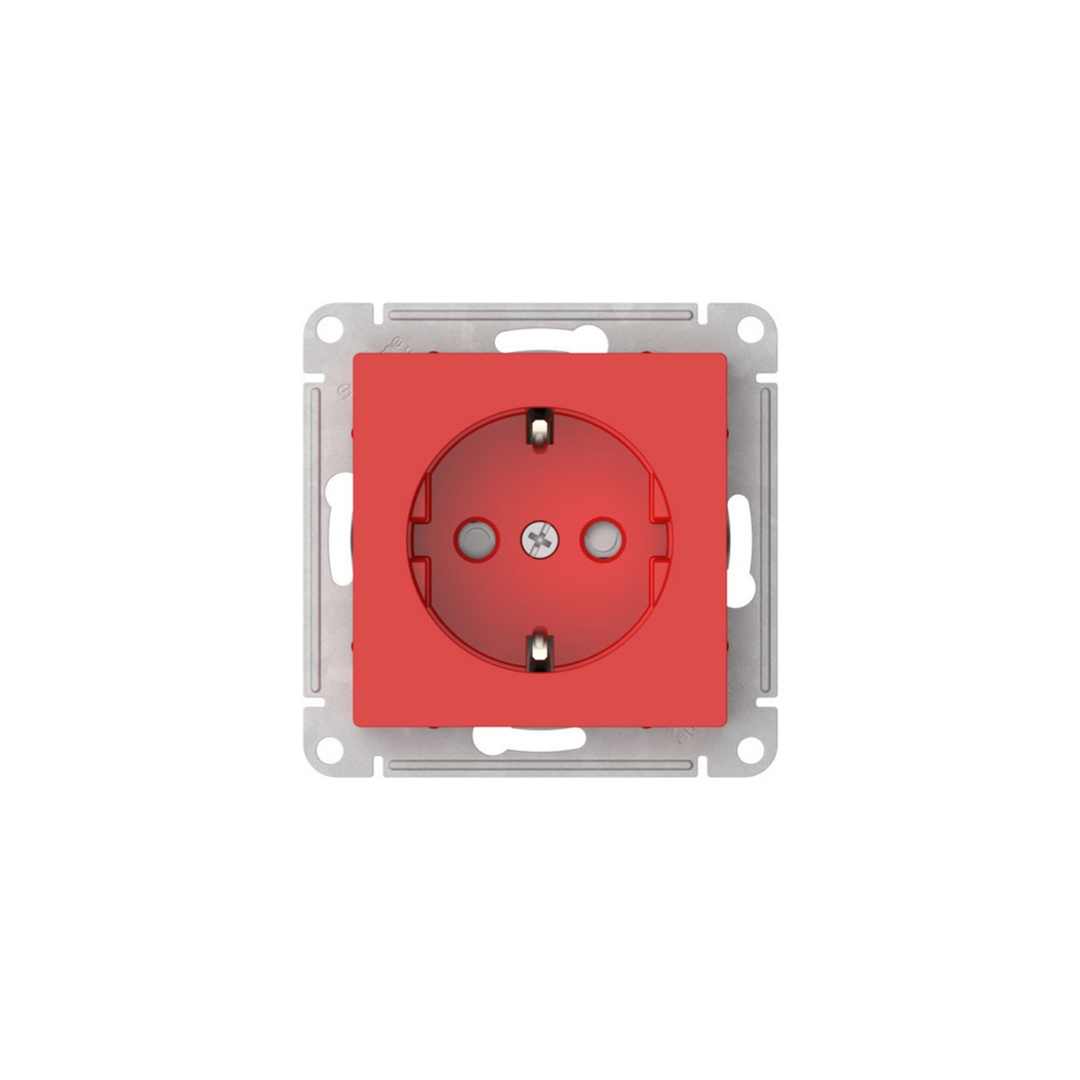Механизм с быстрозажимными клеммами Systeme Electric (ранее Schneider Electric) серии AtlasDesign в красном цвете розетки одинарной с заземлением и со штороками подходит для сетей 250 В, на ток 16 А. С помощью новых быстрозажимных клемм монтаж розеток и выключателей стал намного быстрее. Теперь подключение не требует использования отвертки.