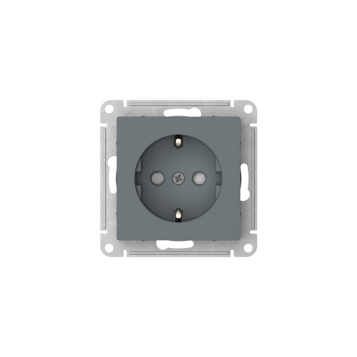 Механизм с быстрозажимными клеммами Systeme Electric (ранее Schneider Electric) серии AtlasDesign в цвете грифель розетки одинарной с заземлением и со штороками подходит для сетей 250 В, на ток 16 А. С помощью новых быстрозажимных клемм монтаж розеток и выключателей стал намного быстрее. Теперь подключение не требует использования отвертки.