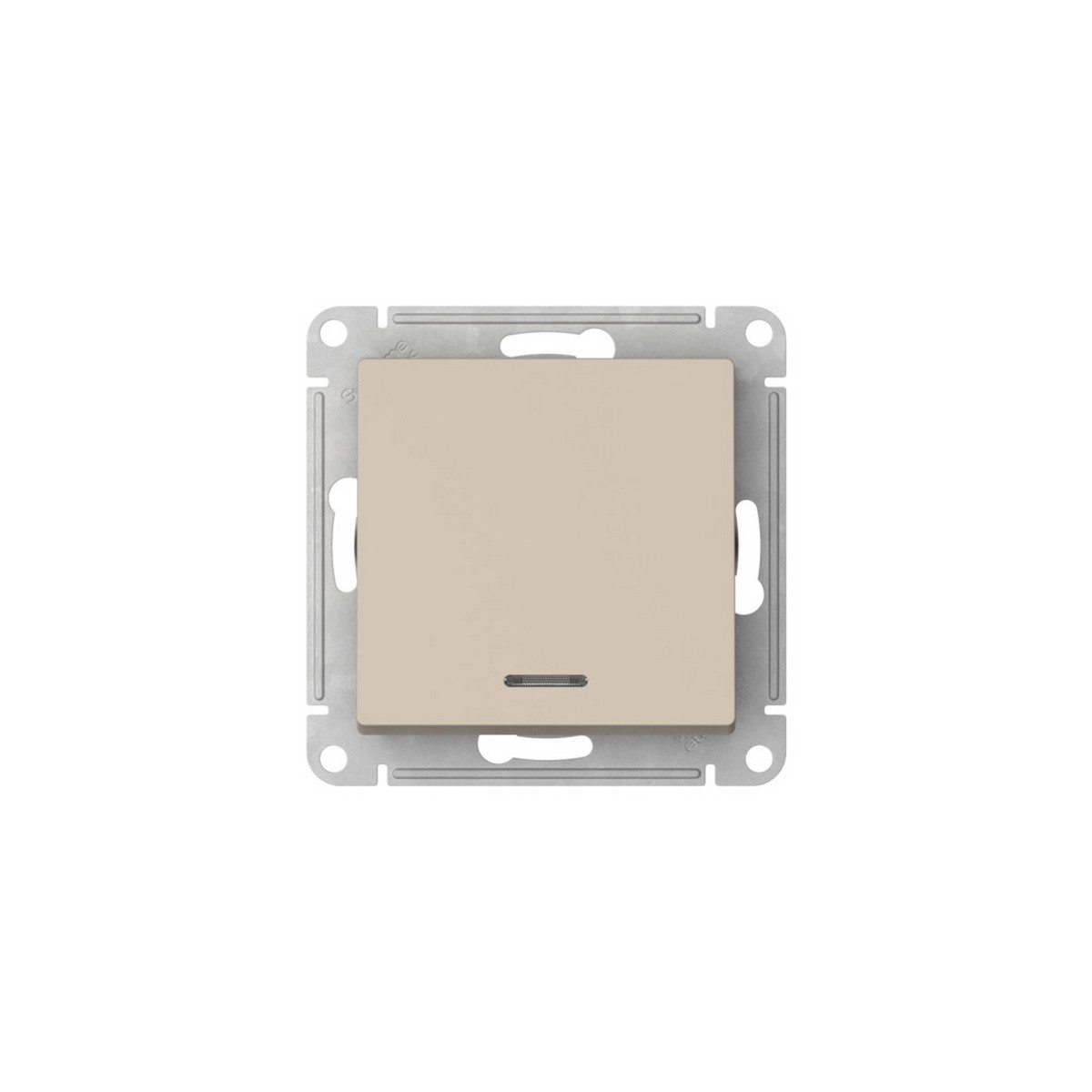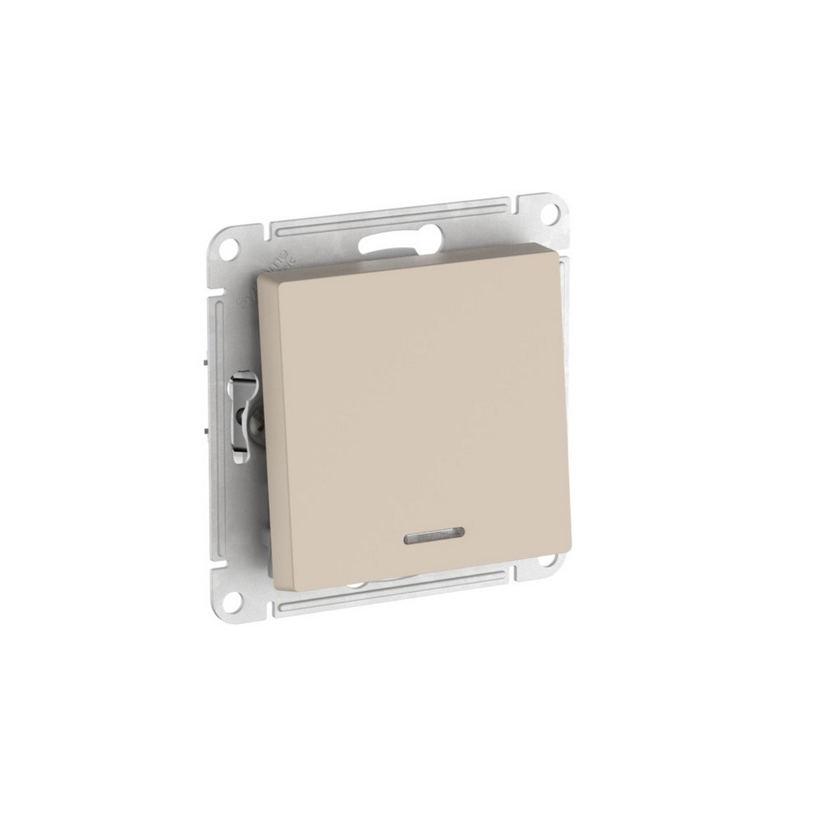 Механизм с быстрозажимными клеммами Systeme Electric (ранее Schneider Electric) серии AtlasDesign в цвете песочный 1-клавишного переключателя с подсветкой подходит для сетей 250 В, на ток 10 А. С помощью новых быстрозажимных клемм монтаж розеток и выключателей стал намного быстрее. Теперь подключение не требует использования отвертки.