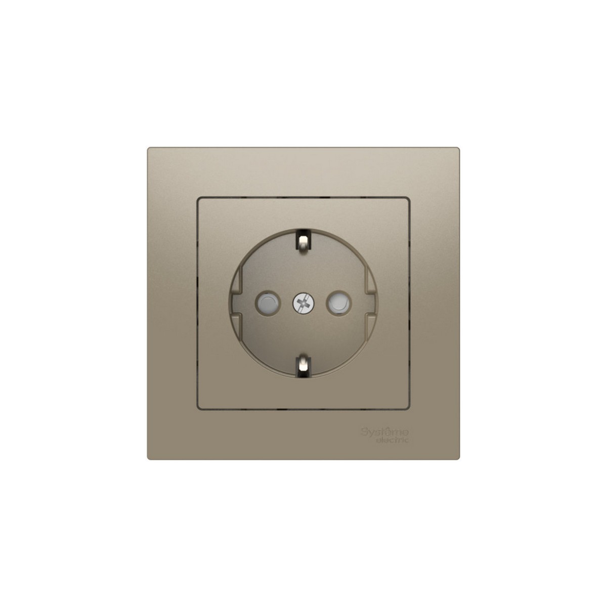 Механизм с быстрозажимными клеммами Systeme Electric (ранее Schneider Electric) серии AtlasDesign в цвете шампань розетки одинарной с заземлением и со штороками в сборе подходит для сетей 250 В, на ток 16 А. С помощью новых быстрозажимных клемм монтаж розеток и выключателей стал намного быстрее. Теперь подключение не требует использования отвертки.