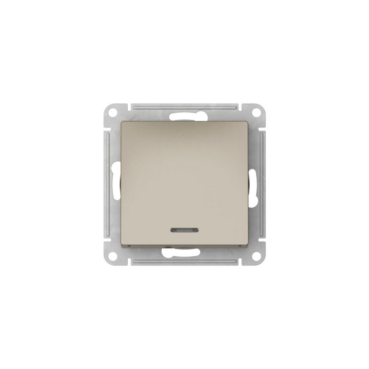 Механизм с быстрозажимными клеммами 1-клавишного выключателя с подсветкой Systeme Electric (ранее Schneider Electric) серии AtlasDesign в цвете шампань подходит для сетей 250 В, на ток 10 А. С помощью новых быстрозажимных клемм монтаж розеток и выключателей стал намного быстрее. Теперь подключение не требует использования отвертки.