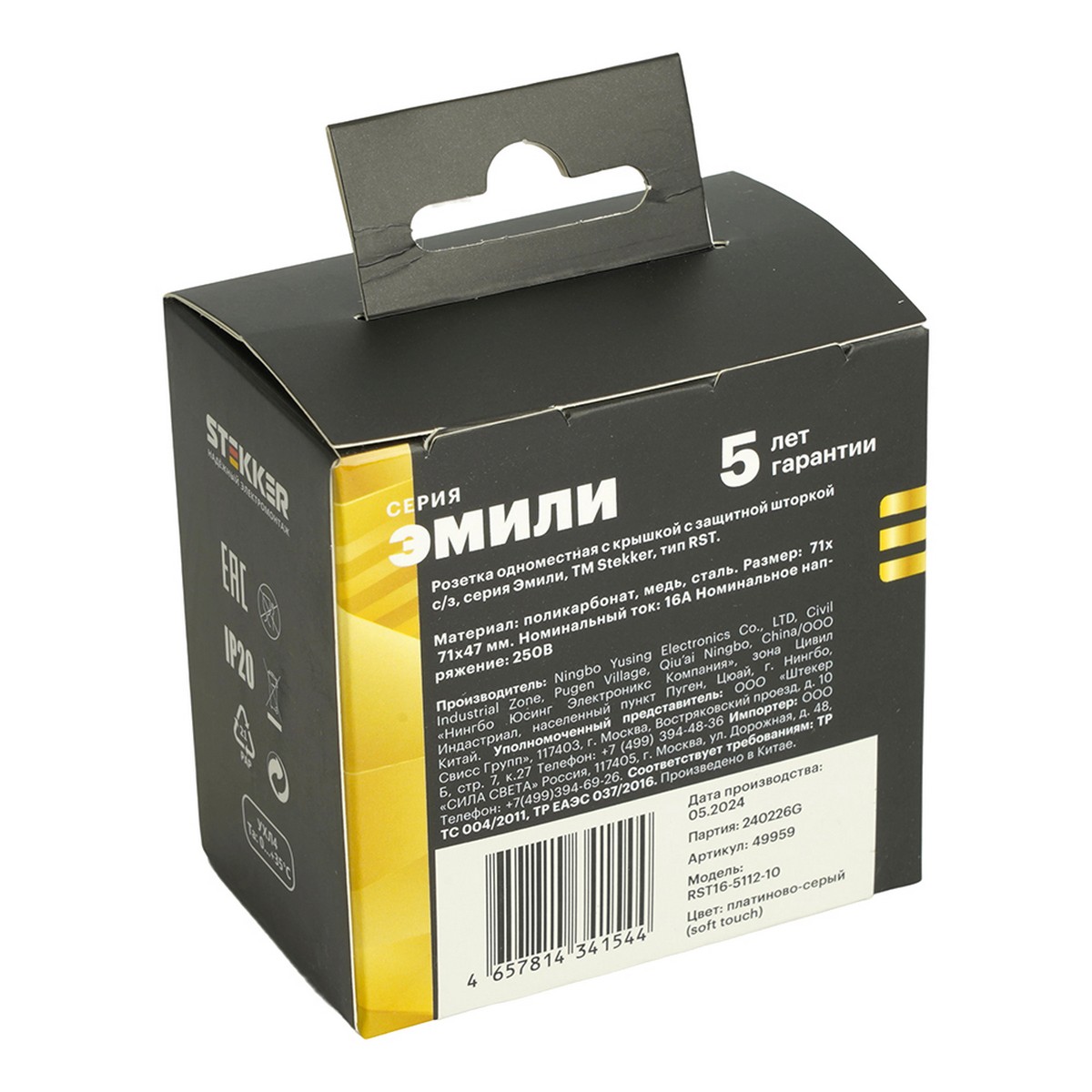 Розетка 1-ая с крышкой с защ. штор с/з STEKKER Эмили RST16-5112-10 платиново-серый soft touch 49959 по цене 386 руб. с фотографией и техническими характеристиками. Для покупки товара нажмите кнопку "Купить" и перейдите в корзину или позвоните по телефону 8 (495) 585 32 60 или 8 (800) 222 23 53.