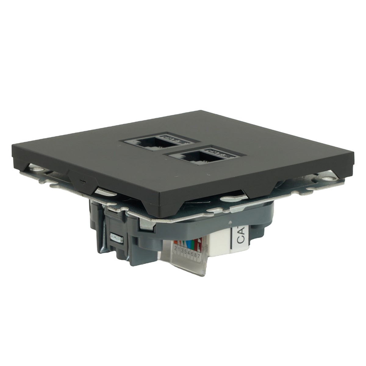 Розетка компьютерная 2-ая RJ-45 STEKKER Эмили RST00-5111-05 предназначена для подключения сетевого оборудования. Выполнена в цвете черный уголь с эффектом soft touch, что обеспечивает стильный внешний вид и приятные тактильные ощущения. Идеальна для использования в офисах и современных интерьерах. Надежный механизм гарантирует долгий срок службы.