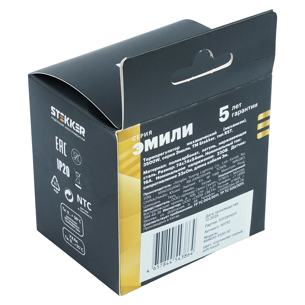Терморегулятор механический STEKKER Эмили RSW00-5120-10 платиново-серый soft touch 50712 по цене 2 204 руб. с фотографией и техническими характеристиками. Для покупки товара нажмите кнопку "Купить" и перейдите в корзину или позвоните по телефону 8 (495) 585 32 60 или 8 (800) 222 23 53.