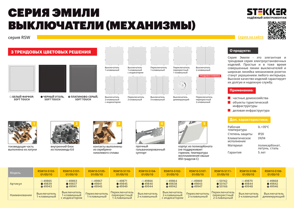 Представляем выключатель 2-клавишный с индикатором STEKKER Эмили RSW10-5102-05 в цвете черный уголь. Эта модель из трендовой серии Эмили объединяет стильный дизайн и высокую функциональность. С его элегантными линиями вы сможете легко интегрировать изделие в любой интерьер, подчеркивая его утонченный вкус. Выключатель предназначен для скрытой установки и имеет компактные размеры 71*71*40 мм. Изготовленный из устойчивого к высокотемпературному воздействию поликарбоната, он не поддерживает горение, что обеспечивает дополнительную безопасность. Токоведущая часть выполнена из оловяннофосфорной бронзы, а внутренний блок – из прочного полиамида 6.6, что гарантирует надежность на долгие годы. Номинальное напряжение 250 В и ток 10А делают его подходящим для большинства домашних нужд. LATEX и гальванизированный суппорт добавляют прочности и долговечности. С выключателем СОСТАВ клиента станет не только удобнее, но и стильнее.