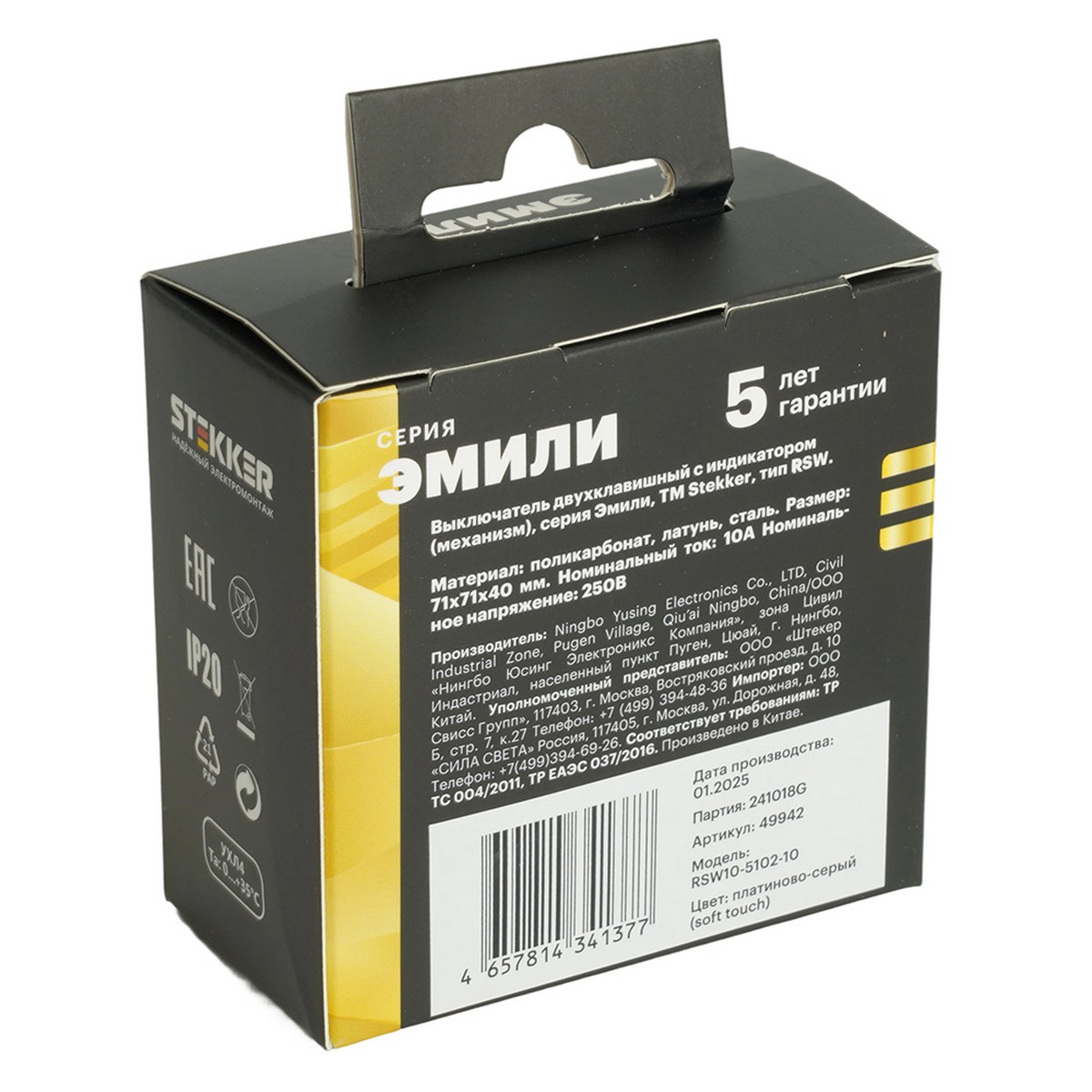 Этот выключатель создан из высококачественных материалов, включая прочный поликарбонат и оловяннофосфорную бронзу, что гарантирует долговечность и безопасность эксплуатации. Номинальное напряжение составляет 250 В, а ток – 10 А, что делает его подходящим для большинства бытовых нужд. Внутренний блок из полиамида 6.6 и гальванизированный суппорт способствуют надежной работе изделия в любое время. Размер выключателя 71x71x40 мм, а тип установки скрытый, что обеспечивает удобство монтажа и использования. Выберите выключатель STEKKER Эмили для стильного и безопасного решения в вашем интерьере.