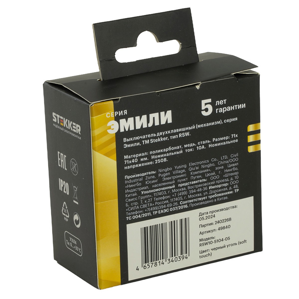 Выключатель 2-клавишный STEKKER Эмили RSW10-5104-05 черный уголь soft touch 49840 по цене 253 руб. с фотографией и техническими характеристиками. Для покупки товара нажмите кнопку "Купить" и перейдите в корзину или позвоните по телефону 8 (495) 585 32 60 или 8 (800) 222 23 53.