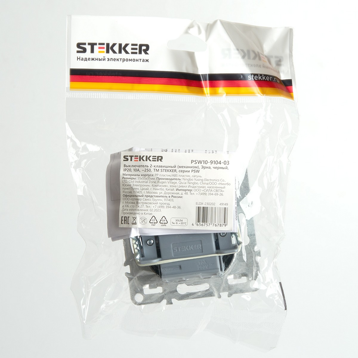 Выключатель 2-клавишный STEKKER PSW10-9104-03 10А Эрна черный 49149 по цене 99 руб. с фотографией и техническими характеристиками. Для покупки товара нажмите кнопку "Купить" и перейдите в корзину или позвоните по телефону 8 (495) 585 32 60 или 8 (800) 222 23 53.