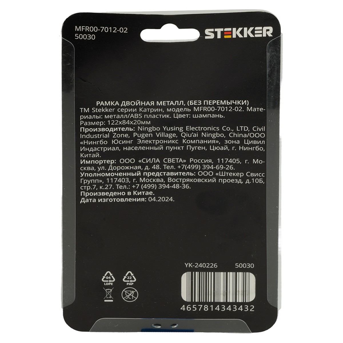 Рамка 2-местная STEKKER MFR00-7012-02 Катрин в цвете шампань – идеальное решение для создания стильного и современного интерьера. Изготовленная из прочного металла и ABS пластика, она обеспечивает долговечность и надежность в эксплуатации. Размеры 122*84*20 мм позволяют легко интегрировать рамку в различные дизайнерские решения.