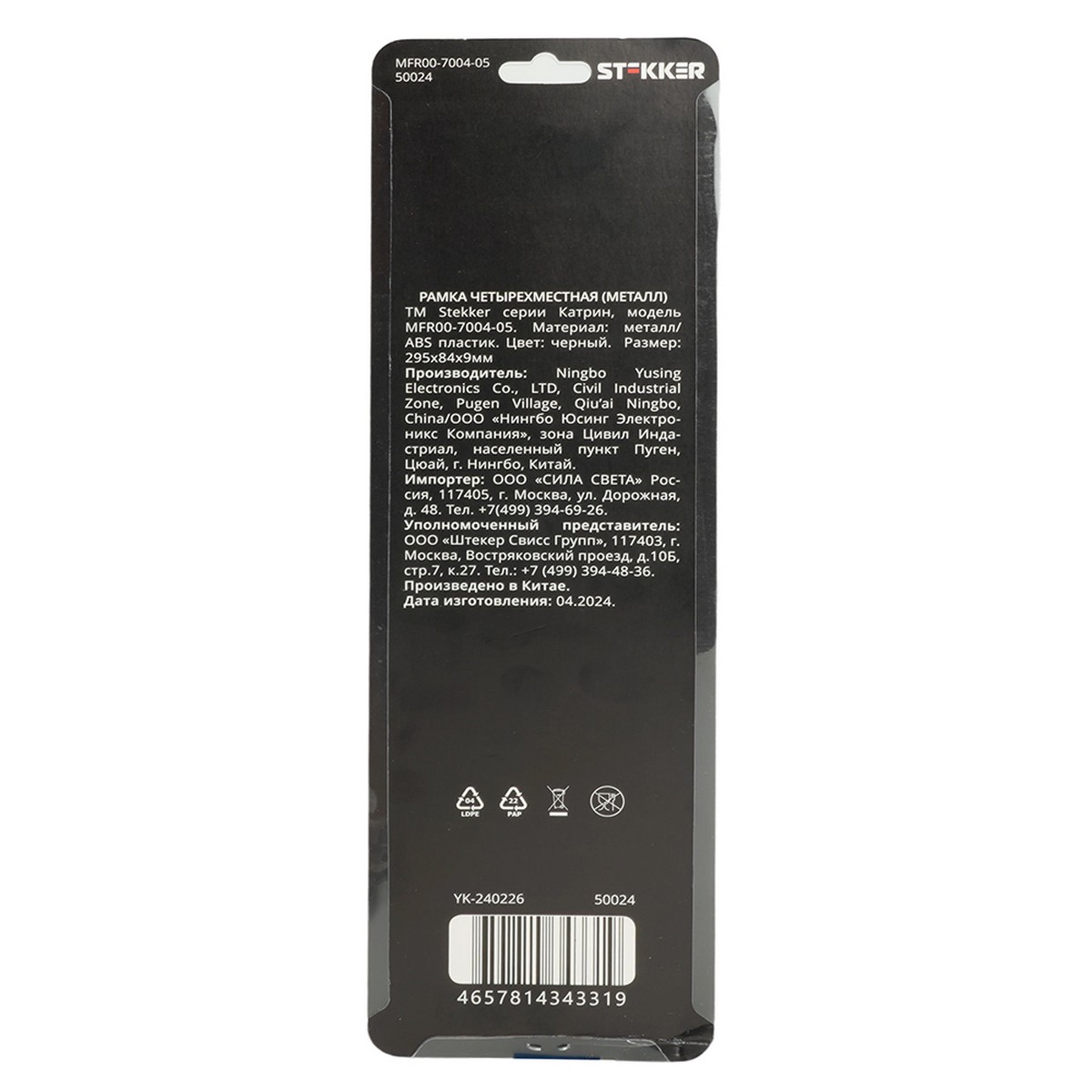 Рамка 4-местная металл STEKKER MFR00-7004-05 в черном цвете идеально подходит для создания стильных и функциональных решений в интерьере. Изготовленная из прочного металла и ABS пластика, она обеспечивает надежность и долговечность. Размер 295*84*9 мм позволяет легко интегрировать рамку в различные пространства, будь то дома, офисы или коммерческие помещения.