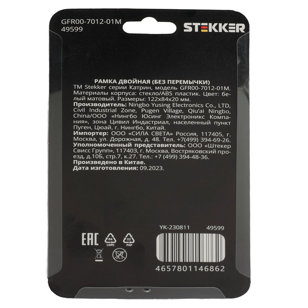 С этой рамкой вы получаете не только высококачественный продукт от надежного производителя STEKKER, но и элемент, который подчеркнет вашу индивидуальность и стиль.