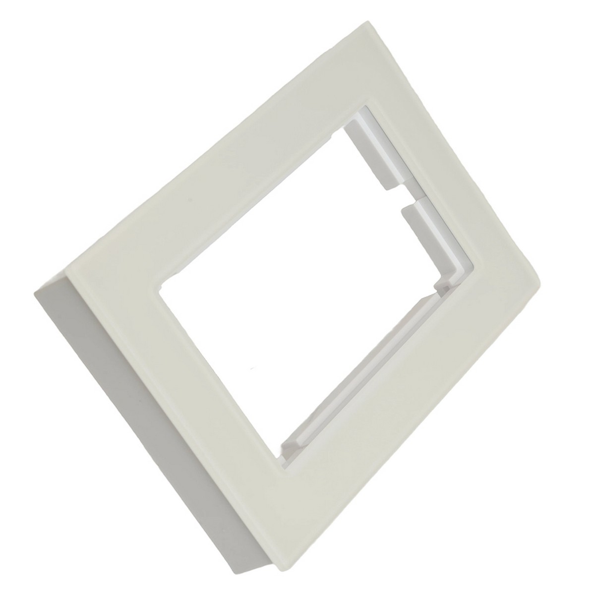 Размеры рамки составляют 122 х 84 х 20 мм, что позволяет легко интегрировать ее в уже существующие электроустановки. Внутренние компоненты конструктивно выполнены из оловяннофосфорной бронзы и полиамида 6.6, что гарантирует надежность и долгий срок службы. Корпус из поликарбоната не поддерживает горение и выдерживает температуры свыше 850 °C, что обеспечивает дополнительную безопасность.