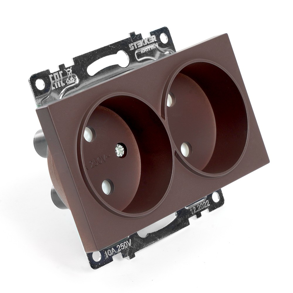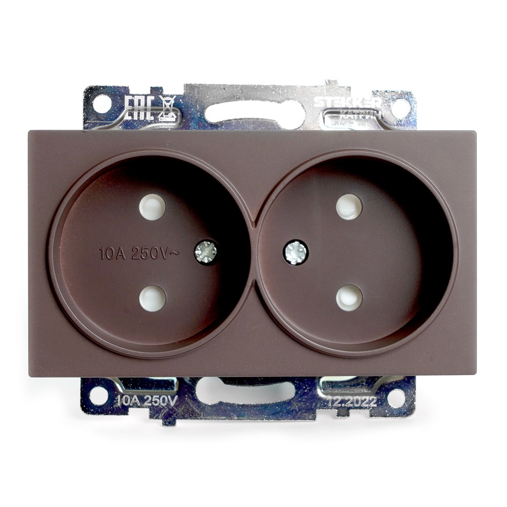 Розетка 2-местная STEKKER GLS10-7113-04 с защитной шторкой предназначена для подключения электроприборов с номинальным напряжением 250V и силой тока до 10А. Элегантный шоколадный цвет в серии Катрин гармонично впишется в любой интерьер, обеспечивая безопасность и надежность использования.