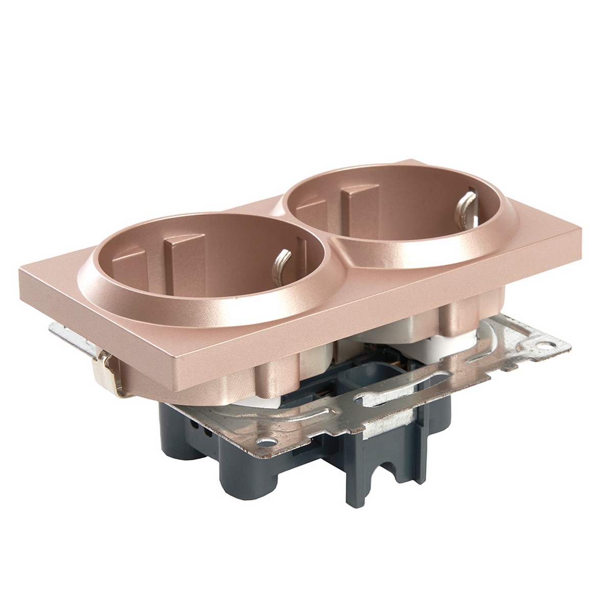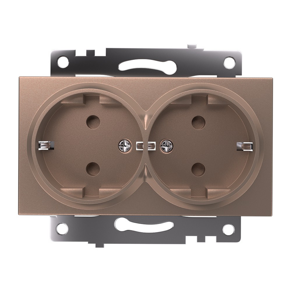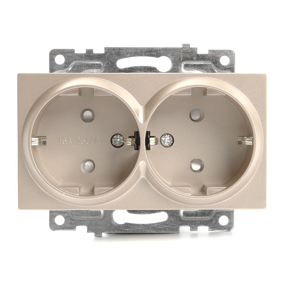 Розетка 2-местная с заземлением STEKKER GLS16-7114-02, 250V, 16А, серия Катрин, цвет шампань. Обеспечивает безопасное подключение электроприборов благодаря защите шторкой. Идеально подходит для домашнего и офисного использования, отличается стильным дизайном и надежностью.