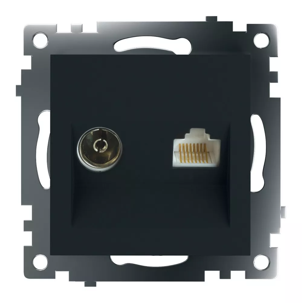Розетка TV и компьютерная RJ-45 STEKKER GLS00-7106-05 из серии Катрин в черном цвете обеспечивает надежное подключение телевизора и компьютера. Идеальна для современных интерьеров, сочетает функциональность и стиль. Подходит для установки в жилых и офисных помещениях.