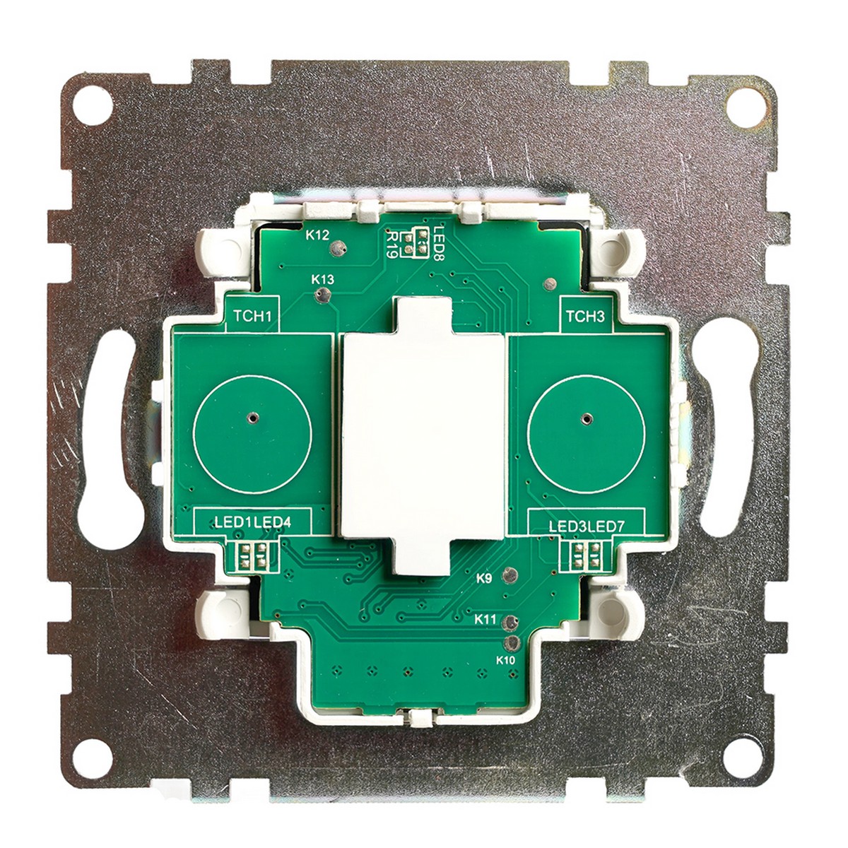 Выключатели сенсорный STEKKER GLS2-7203-01, серия Катрин тип установки - скрытый, размер изделия 71*71*36мм., цвет белый, материал изделия Закаленное стекло, поликарбонат, латунь. Номинальное напряжение 250В, номинальный ток 2,5А, 20