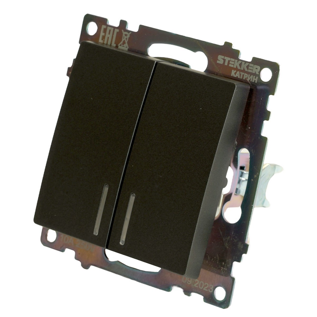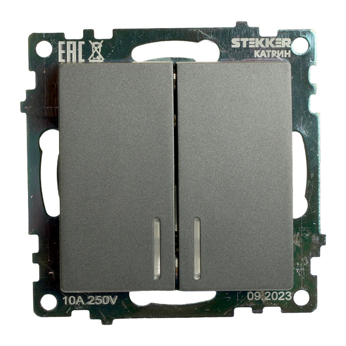 Выключатель 2-клавишный c индикатором STEKKER GLS10-7102-06 10А Катрин графит 49409 по цене 126 руб. с фотографией и техническими характеристиками. Для покупки товара нажмите кнопку "Купить" и перейдите в корзину или позвоните по телефону 8 (495) 585 32 60 или 8 (800) 222 23 53.