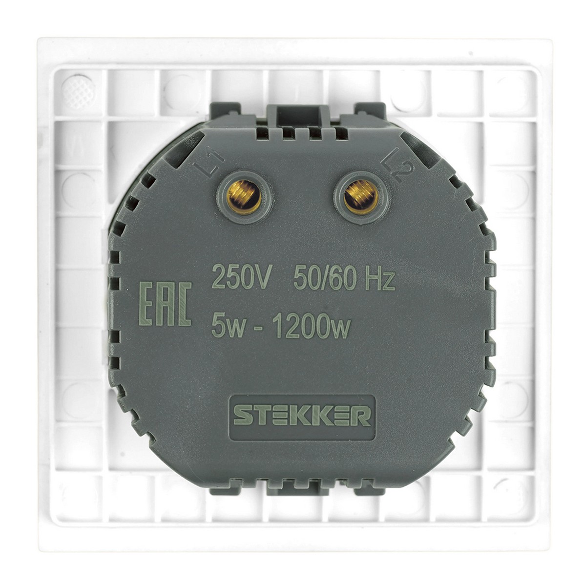 Выключатель диммирующий STEKKER RSW10-3106-01, серия Мия тип установки - скрытый, размер изделия 71*71*52мм., цвет белая магнолия, материал изделия поликарбонат. Номинальное напряжение 250 , номинальный ток 5А, 20
