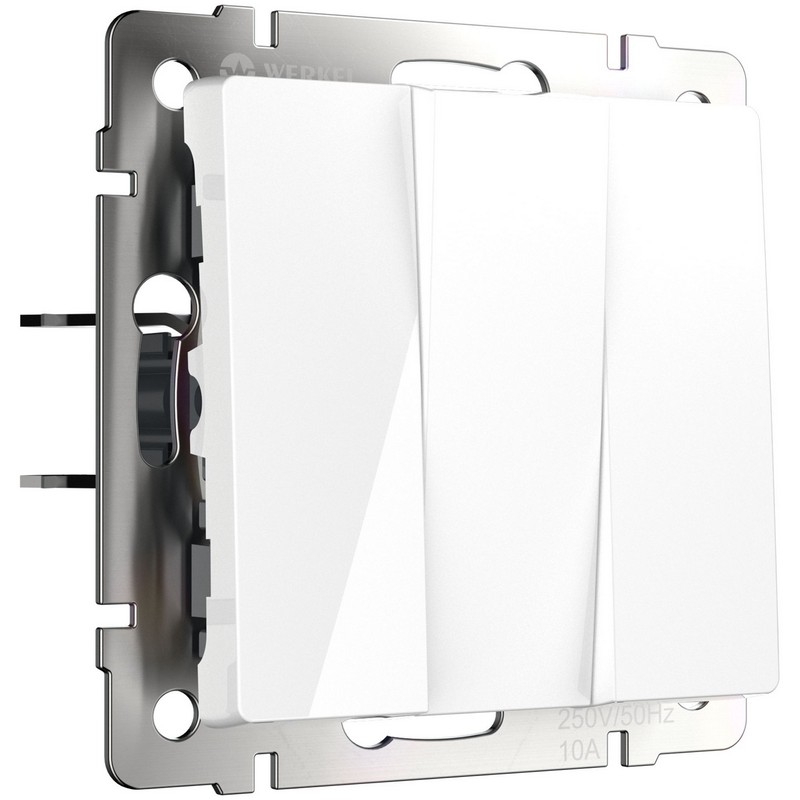 Выключатель трехклавишный Werkel W1130006 — это надежное и стильное решение для управления освещением и вентиляцией в жилых и общественных зданиях. С номинальным током 10 А и рабочим напряжением 250 В, он обеспечивает стабильную работу и позволяет независимо подключать два устройства.
