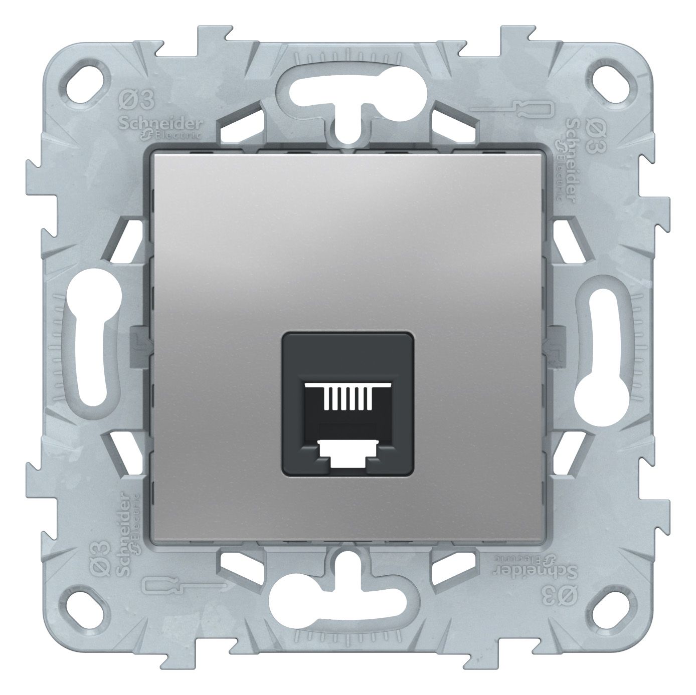 Розетки телефонные и компьютерные от производителя Schneider Electric серии Unica NEW в цвете Алюминий Механизм выполнен из современных материалов, соответствующим ГОСТ. Что позволяет повысить срок службы изделия. ABS пластик защищен от выцветания. Гарантия от производителя.