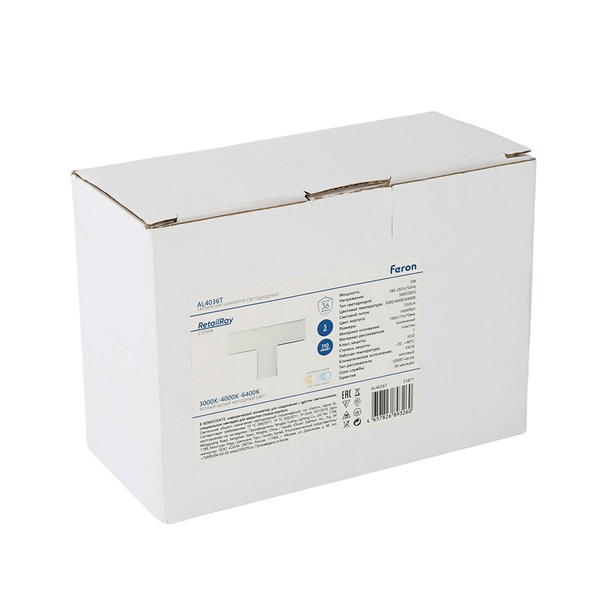 Светильник коннектор Feron AL4036T 5W 3000К-4000К-6400K T-образный серебро RetailRay 51871 по цене 2 497 руб. с фотографией и техническими характеристиками. Для покупки товара нажмите кнопку "Купить" и перейдите в корзину или позвоните по телефону 8 (495) 585 32 60 или 8 (800) 222 23 53.