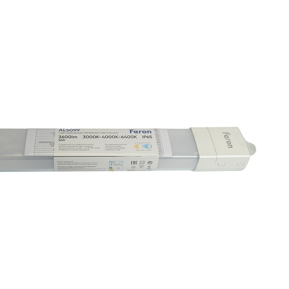 Светильник светодиодный линейный Feron AL5099 IP65 36W 3000K-4000K-6400K 1160 мм 51961 по цене 1 203 руб. с фотографией и техническими характеристиками. Для покупки товара нажмите кнопку "Купить" и перейдите в корзину или позвоните по телефону 8 (495) 585 32 60 или 8 (800) 222 23 53.