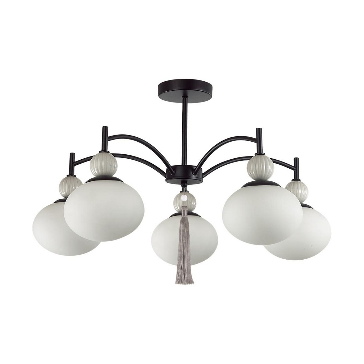 Линия светильников GLORIYA привлекает внимание необычной формой плафонов в виде элипсоида и керамики в виде фактурных шарообразных элементов бежевого или серого цвета. Изящная арматура в латунном или черном цвете объединяет все элементы и венчается шелковой съемной кисью в центре всей композиции.