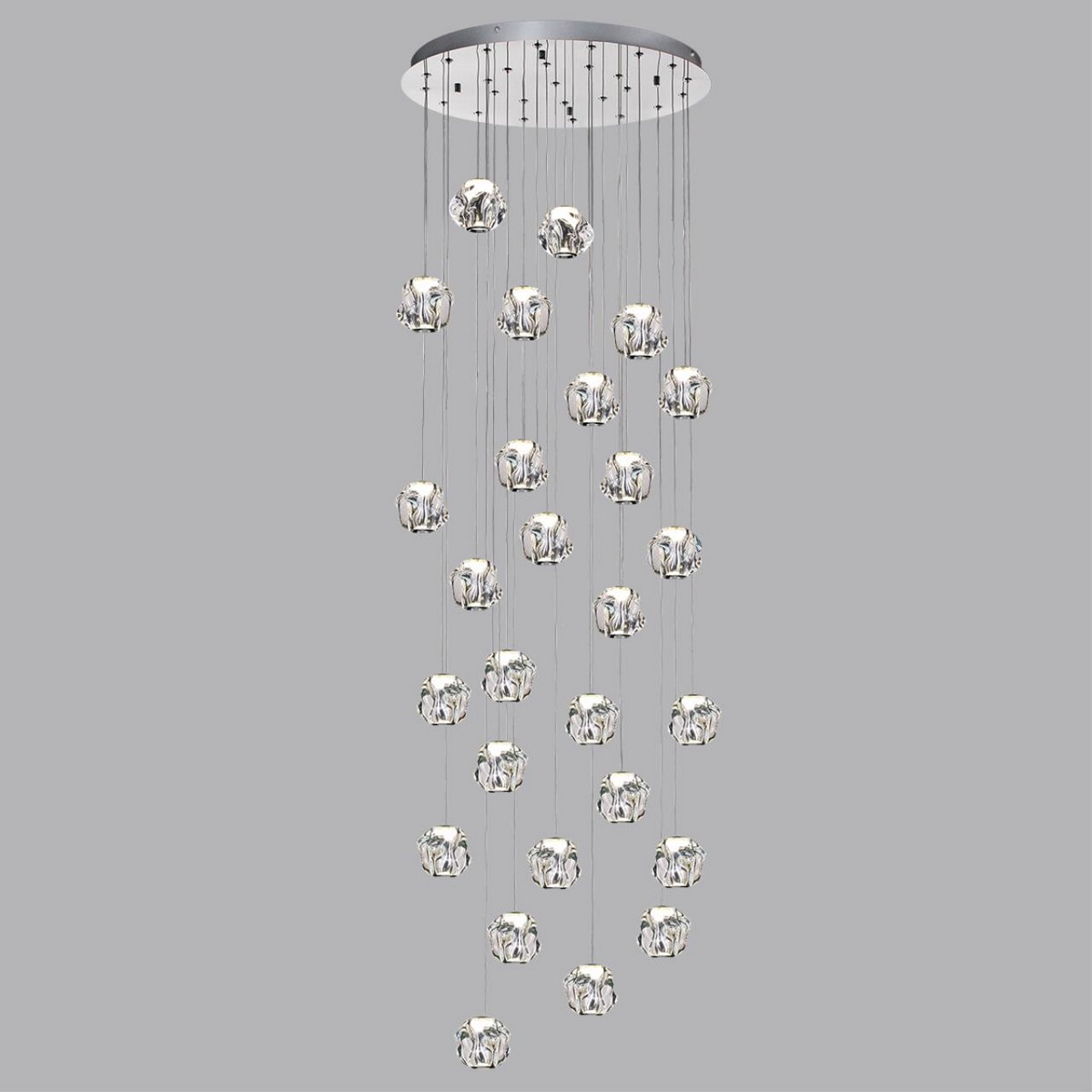 Jemstone серия смотрится как истинно дизайнерское произведение - роскошное и нестандартное: невероятно красивые плафоны необычной формы в виде сжатого камня; материал плафона - высококачественный акрил фирмы Mitsubishi (Япония), который обладает великолепными светопреломляющими и светоотражающими свойствами; 100% имитация хрусталя – характерные переливы, сверкание, идеальная прозрачность. В модельный ряд линии входят бра 2-х видов, каскадные люстры (высота 2 и 2,5м, удобный механизм регулировки струн ), одиночные подвесы и подвесы-«бусы» с системой крепления 2 в 1- накладной и встроенный монтаж в комплекте.