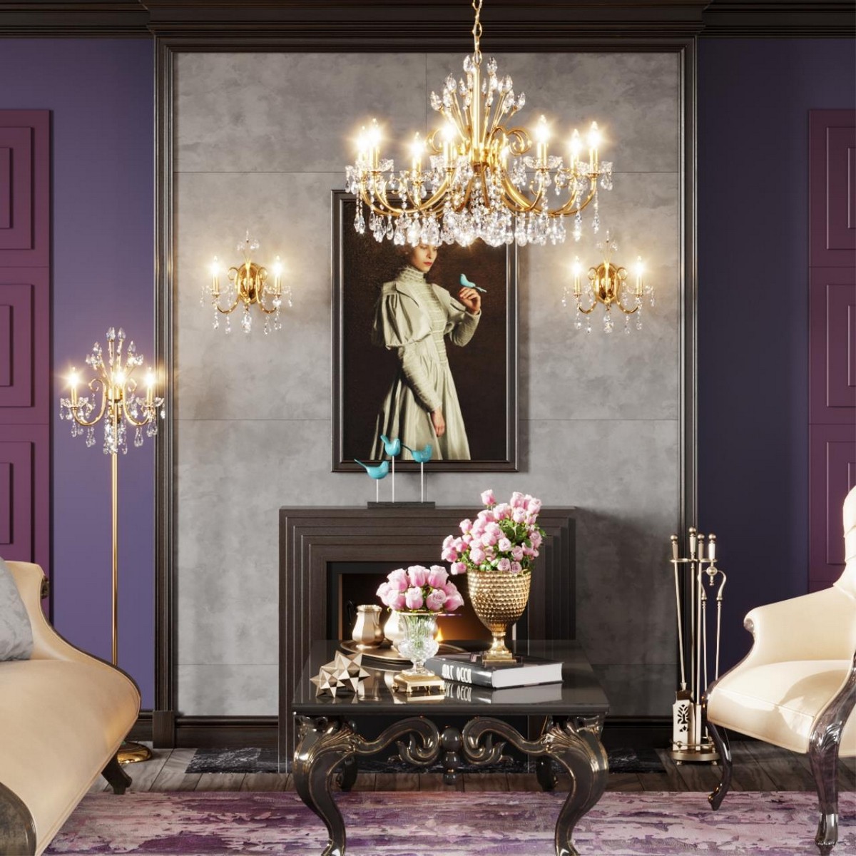 Каркас люстры выполнен в элегантном золотом цвете, дополненном хрустальными подвесками, что делает модель идеальным выбором для тех, кто ищет в освещении элемент роскоши. Патрон типа E14 позволяет использовать различные виды ламп, что добавляет универсальности в эксплуатации. Люстра подходит для освещения больших помещений, ведь в линейке представлены различные размеры и комплектующие, такие как бра и торшеры, что позволяет создать гармоничную световую атмосферу в интерьере.