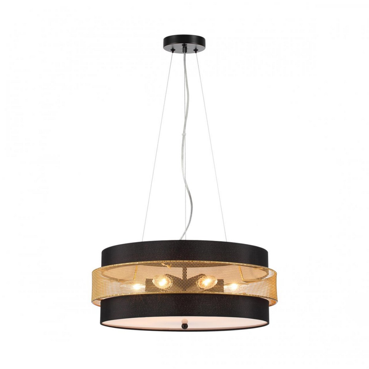 Светильники серии ANIMAISA привлекают внимание классическим сочетанием черного и золотого цветов и нестандартным сочетанием материалов – ткани и металла. Верхняя и нижняя части абажуров светильников выполнены из ткани, что позволяет мягко рассеивать свет. Центральная же часть выполнена из металлической сетки, благодаря чему от светильников достаточно света для общего освещения пространства. Светильник в базовой комплектации устанавливается как потолочный, если есть необходимость в подвесном светильнике, необходимо использовать подвесное крепление белого цвета (артикул 8002А) или черного цвета (артикул 8003А)
