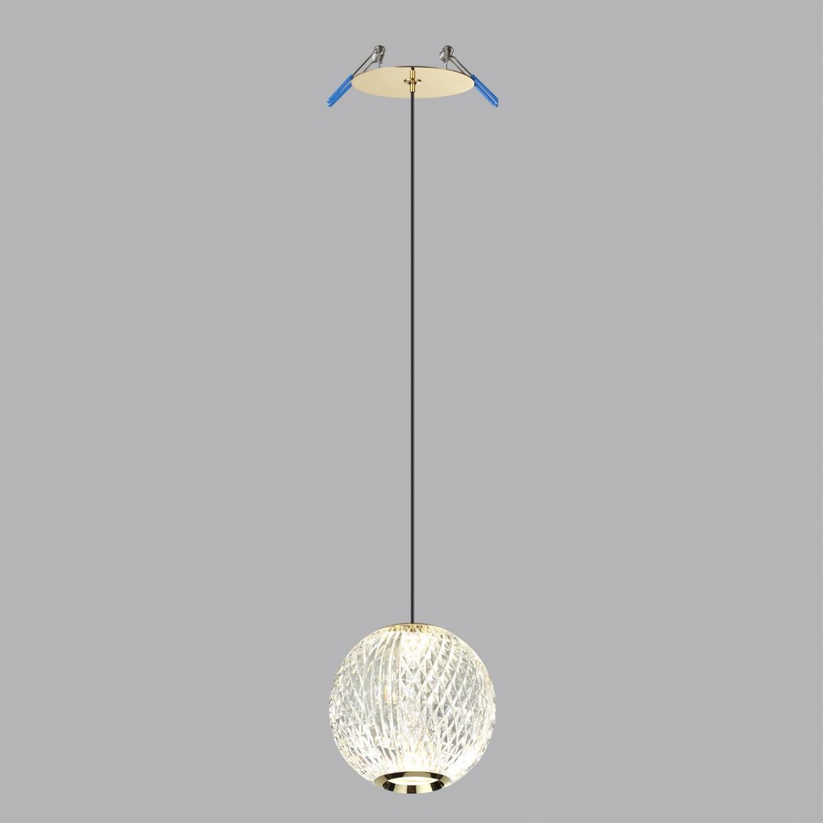 Декоративные элементы в виде акриловых шариков, имитирующих хрусталь, добавляют роскошности и позволяют свету мягко распределяться, создавая уютную атмосферу. Подвес украшен золотистыми элементами, что придает особенный шарм и подчеркивает высокий стиль интерьера. Модель предлагает гибкость монтажа, позволяя выбрать между накладным и встроенным способами установки.
